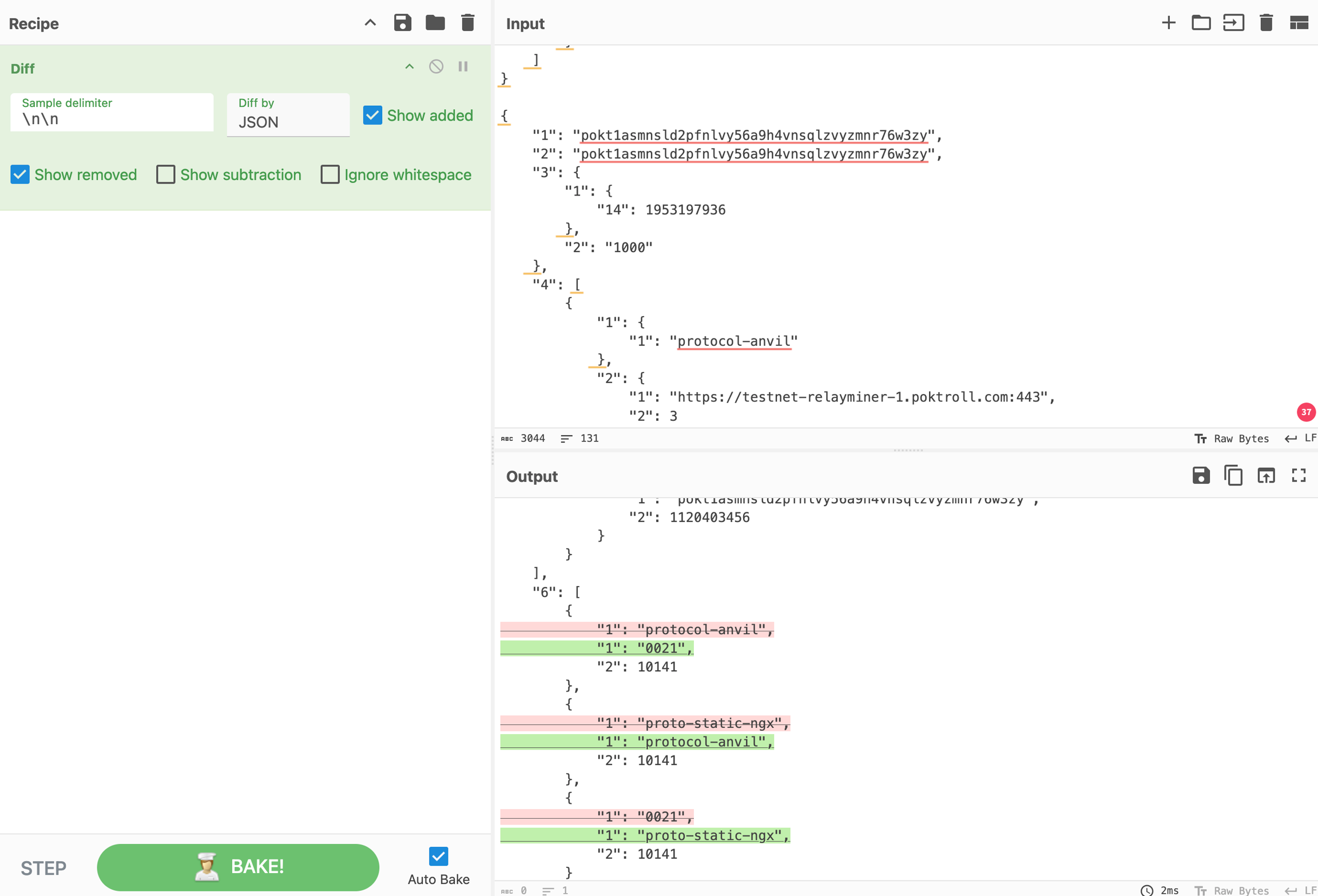 The image above illustrates a difference in the JSON representation of an object, which is likely the root cause of the non-deterministic state breaking consensus between nodes.