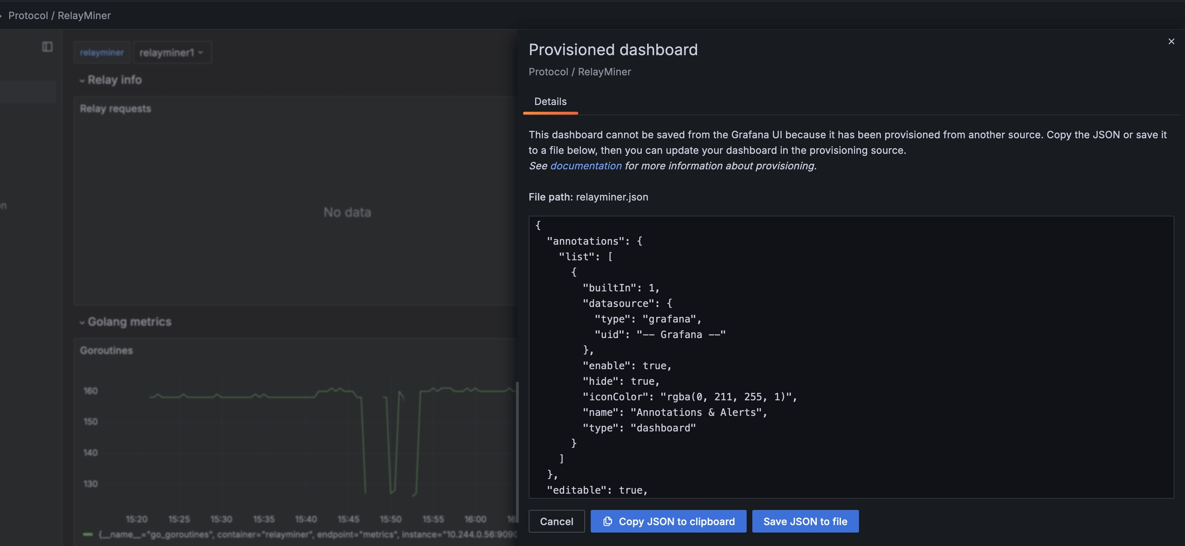 Copy-paste the output to the corresponding file in localnet/grafana-dashboards.